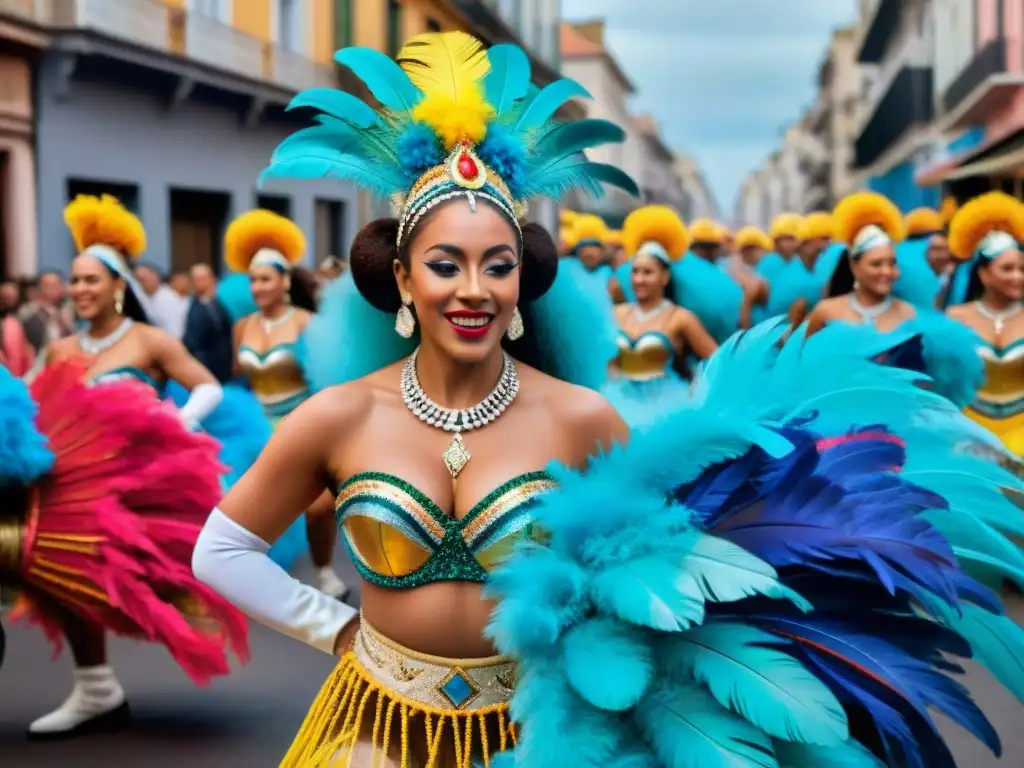 En las comparsas, se fusionan la música, la danza, el vestuario y la narrativa para crear una experiencia artística única que refleja la identidad y la historia afrodescendiente de Uruguay.
